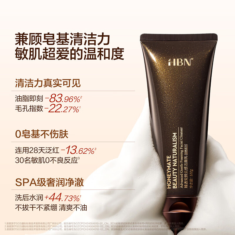 HBN 洗面奶2.0氨基酸洁面敏感肌温和补水护肤品生日礼物送女友