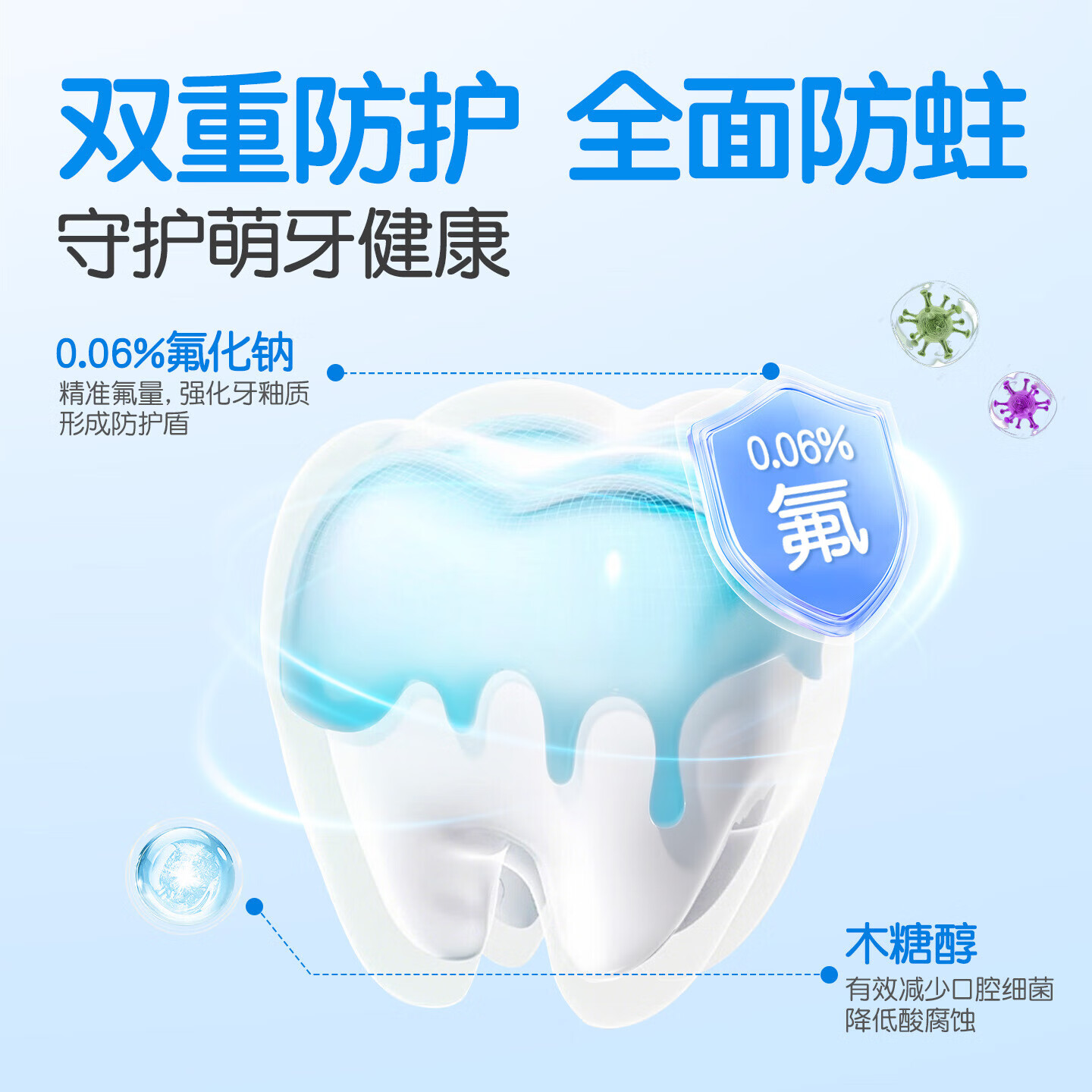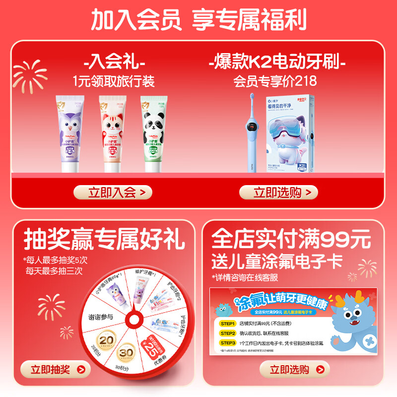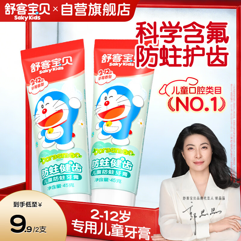 舒客宝贝儿童牙膏2-12岁含氟防蛀哆啦45g两支清新草莓味