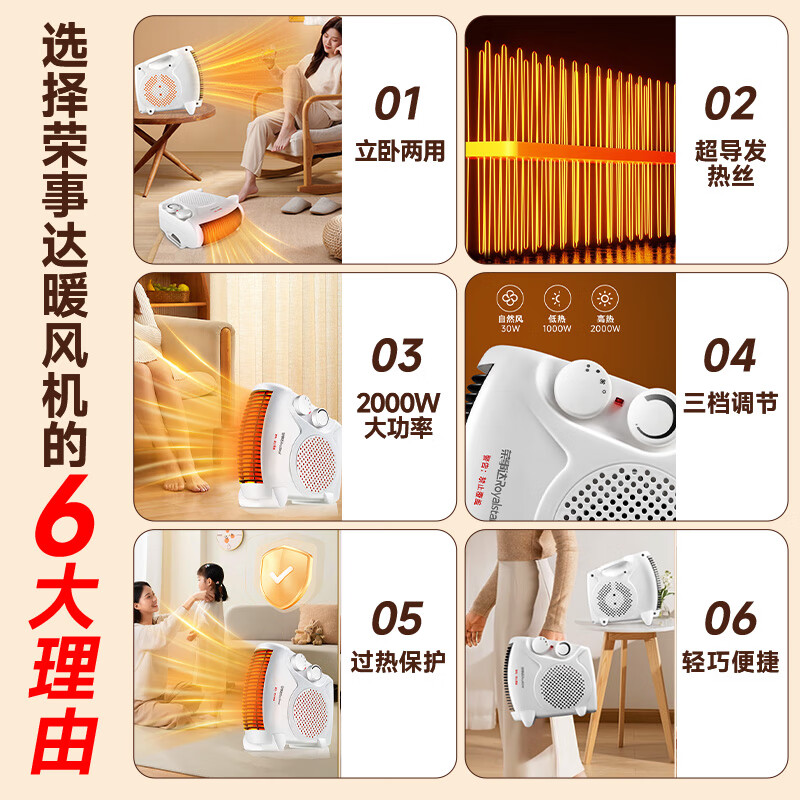 荣事达(Royalstar)【爆款推荐】取暖器家用办公电暖器桌面暖风机室内加热器立卧两用电暖气 节能速暖 NTS-208A