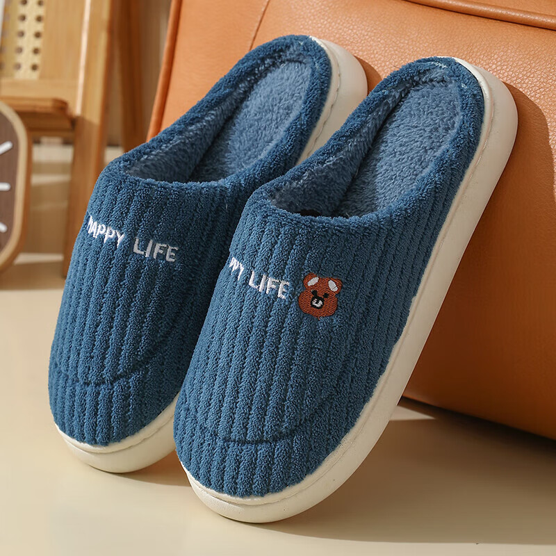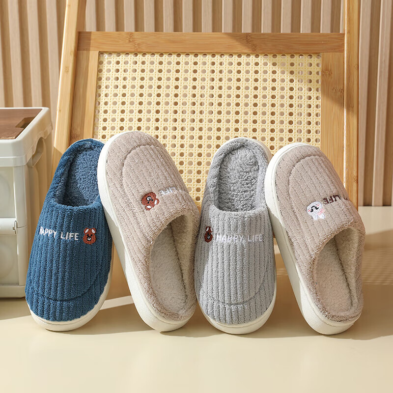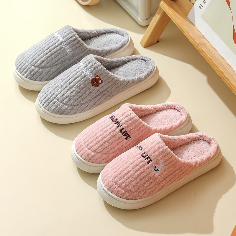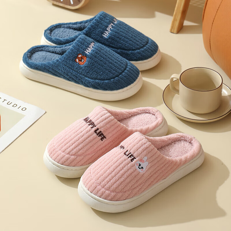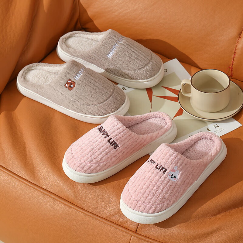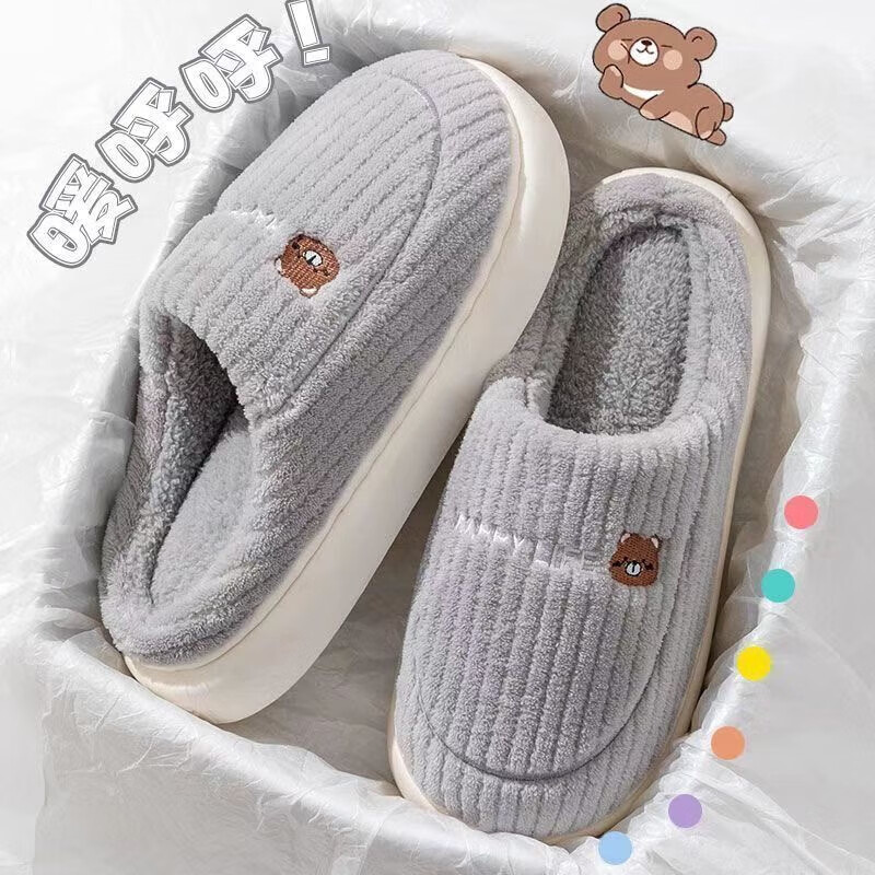 小熊小兔新款秋冬季情侣保暖学生男拖鞋女厚底防滑外穿居家棉拖鞋 小熊小兔棉拖-粉色 38-39 适合37-38