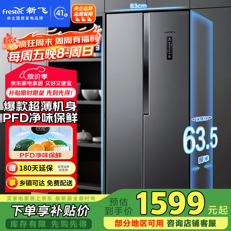 新飞 (Frestec)450升超薄对开门双变频PFD主动净味一级冰箱超大容量风冷无霜电脑控温国家补贴BCD-450WK9ET