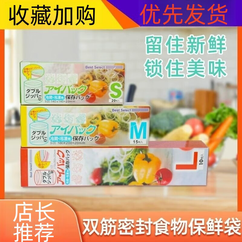双筋密封袋自封袋防串味保鲜袋子可反复使用密实袋 大号1盒
