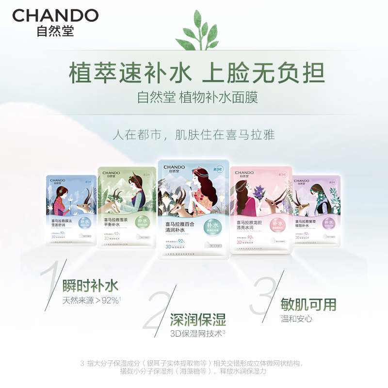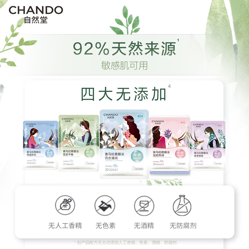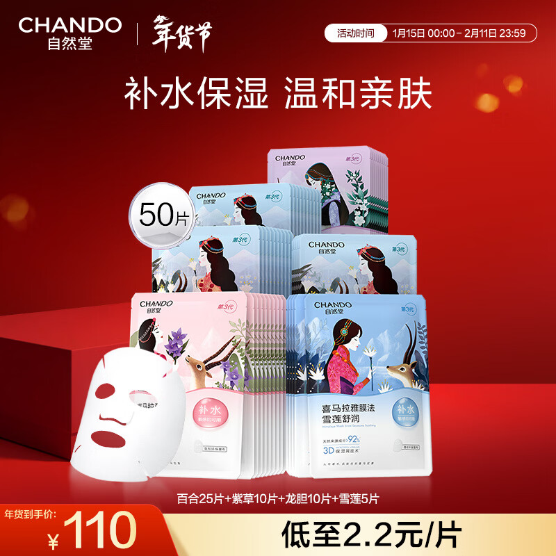 自然堂喜马拉雅植物补水面膜50片套装 补水保湿敏肌可用护肤品新年礼物