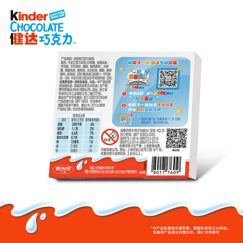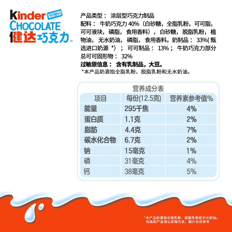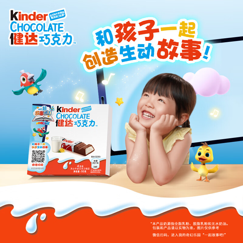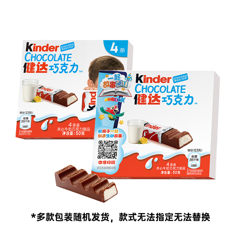 健达 牛奶夹心巧克力 4条装50g 儿童休闲零食 糖果 新年礼物