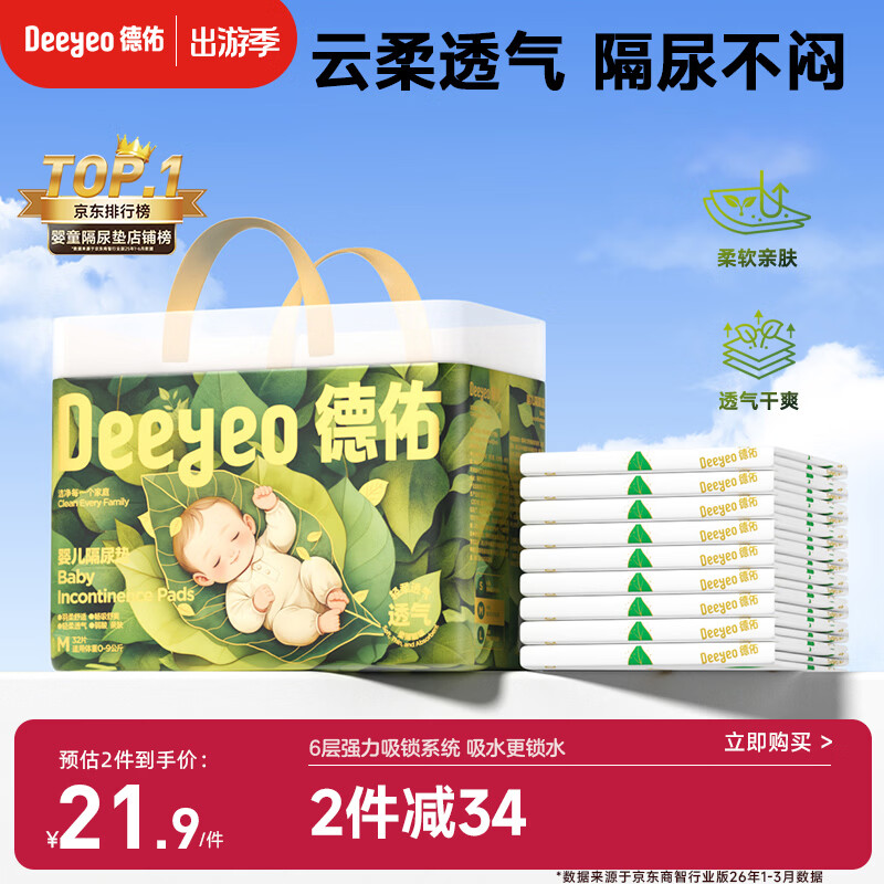 德佑婴儿隔尿垫一次性沁氧宝宝护理垫不可洗透气姨妈垫m码32片