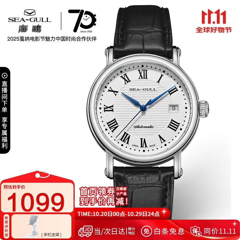 #预估52.45元佣金#50元优惠券海鸥(SEAGULL)手表男士自动机械表 国民日历男士手表 生日礼物男表819.368折扣价¥1242.94原价¥1292.94海鸥表京东自营旗舰店·66人购买