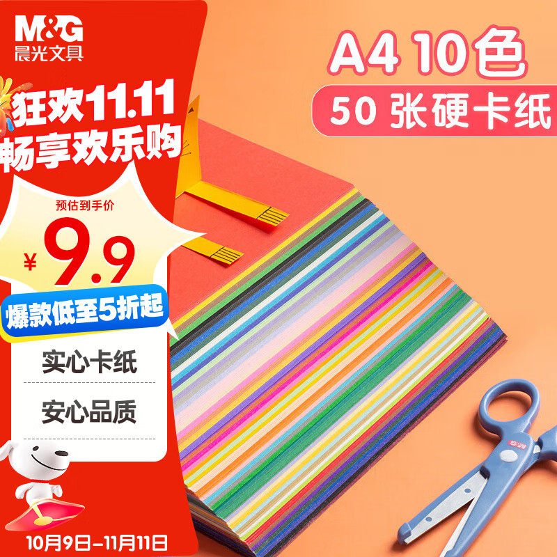 - #预估0.10元佣金晨光(M&G)A4彩色卡纸彩纸加厚硬卡纸10色/50张儿童剪纸国庆手工diy制作卡纸礼物折纸幼儿园小学生 赠教程折扣价¥9.80晨光京东自营旗舰店·5000人购买