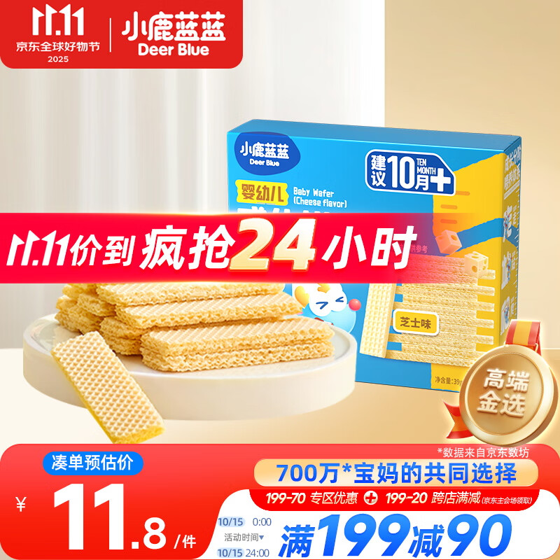 - #预估2.18元佣金#0.7元优惠券小鹿蓝蓝婴幼儿威化饼干 芝士味 婴幼儿宝宝零食手指米饼干 39g折扣价¥11.90原价¥12.60小鹿蓝蓝京东自营旗舰店·800人购买