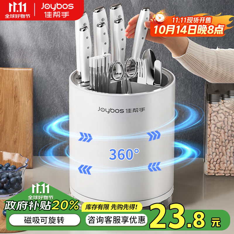 - #预估3.58元佣金佳帮手刀架筷子笼全新升级厨房刀具置物架可旋转沥水多功能一体收纳折扣价¥35.06佳帮手京东自营旗舰店·400人购买