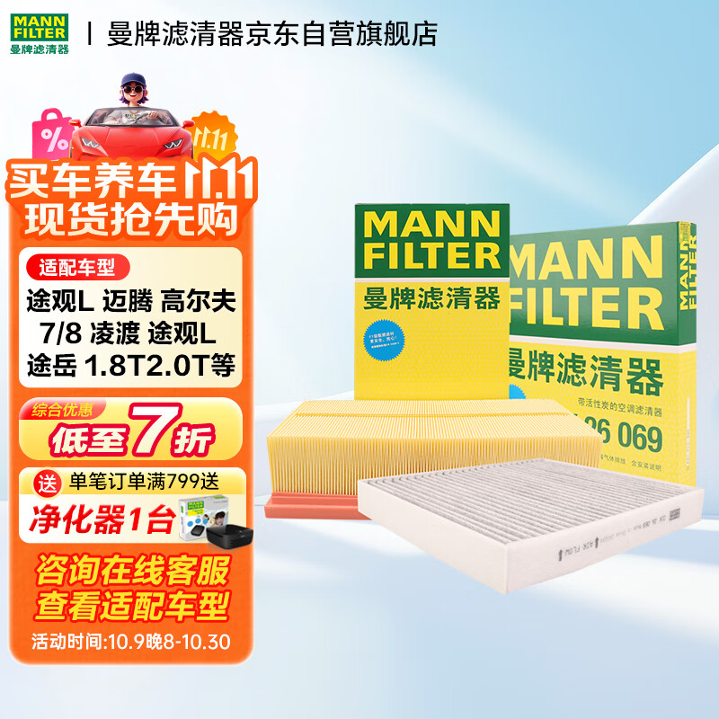 - #预估1.08元佣金#0.8元优惠券曼牌(MANNFILTER)滤清器套装空气滤空调滤新迈腾凌渡探岳途观L柯迪亚克TTA3新速派折扣价¥127.20原价¥128.00曼牌滤清器京东自营旗舰店·47人购买