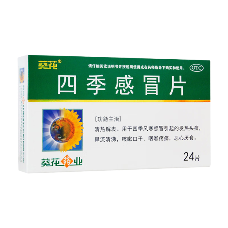 葵花 四季感冒片 0.35克*24片 风寒感冒 引起的鼻塞流鼻涕止咳化痰祛痰清肺咳嗽药发烧头疼