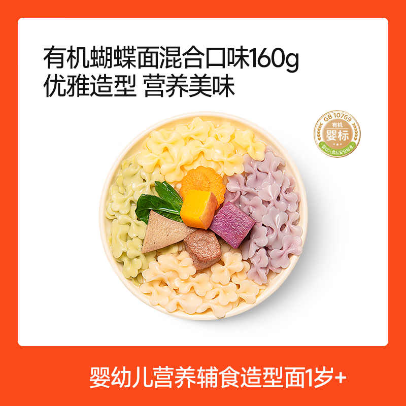 秋田满满有机蝴蝶面混合口味160g宝宝面条婴幼儿辅食儿童彩蝶面100%真验厂
