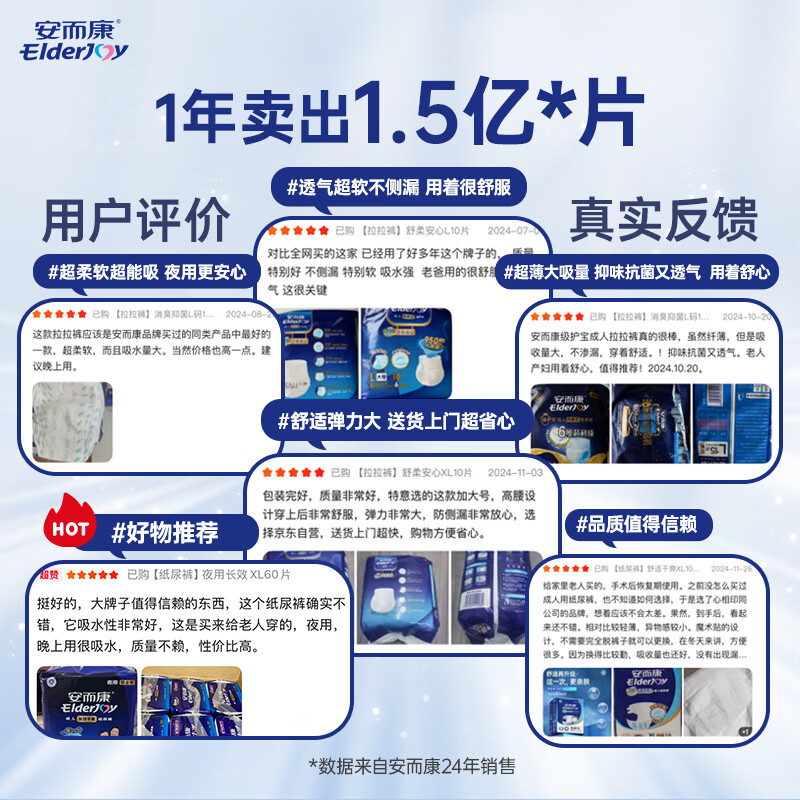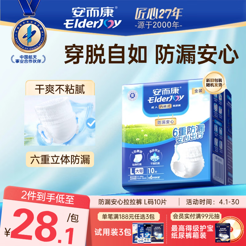 安而康(Elderjoy)防漏安心成人拉拉裤L10片臀围95-120cm内裤式成人纸尿裤易穿脱