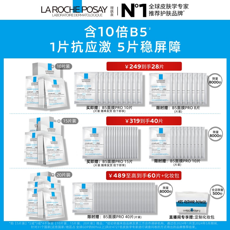 理肤泉【孙颖莎推荐】B5面膜PRO15片套装 补水保湿修护屏障护肤品礼物