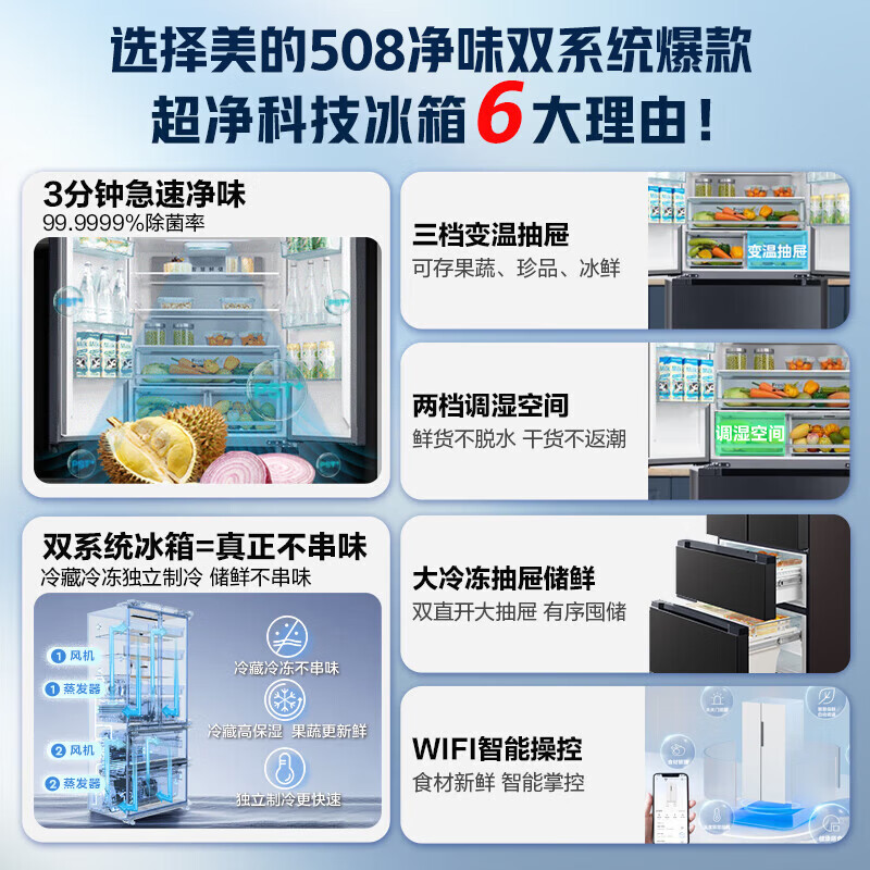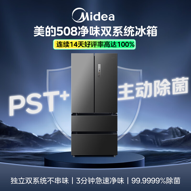 美的(Midea)508L法式四开门冰箱双系统循环一级能效除菌净味风冷无霜大容量以旧换新BCD-508WTPZM(E) 国家补贴