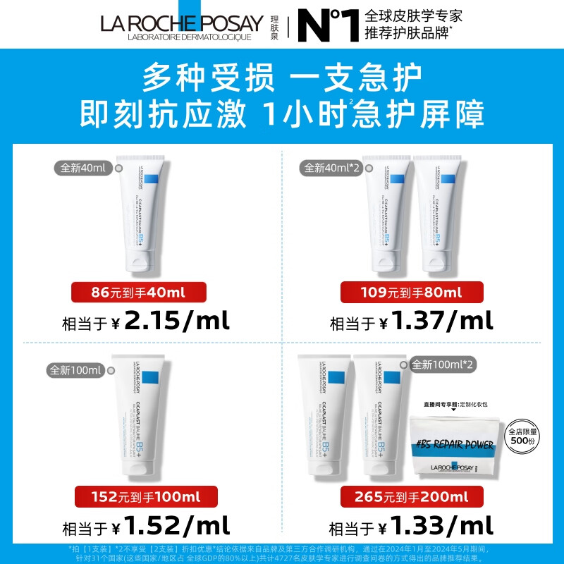 理肤泉全新B5修护霜40ml屏障修护面霜舒缓泛红淡化印痕护肤品11.11礼物