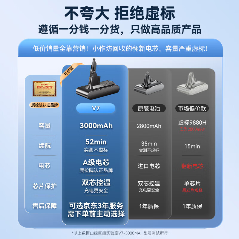 绿巨能(llano)适用戴森Dyson电池V7吸尘器充电锂电池SV11 V7 Animal/Trigger/Motorhead Pro/等 3000mAh