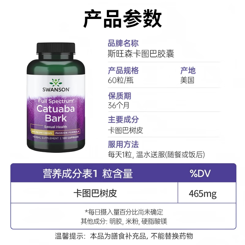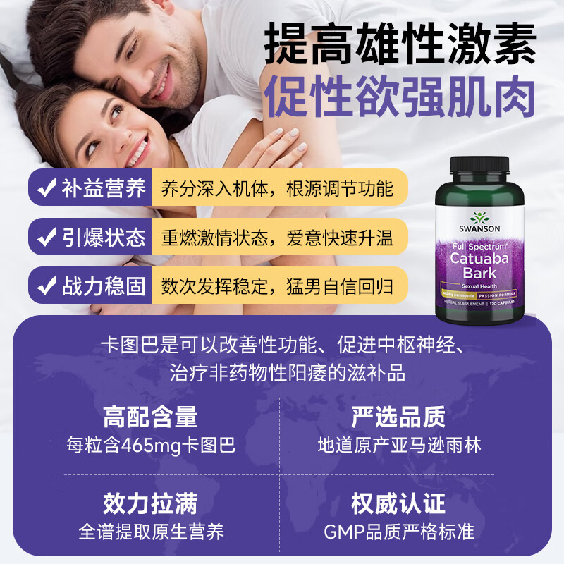 斯旺森(SWANSON)卡图巴树皮胶囊465mg*120粒 提升男荷尔蒙改善性欲提勃起缓解疲劳