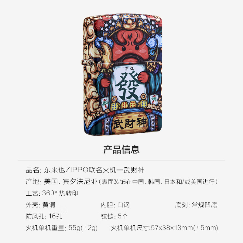 ZIPPO打火机之宝防风煤油 东来也联名-武财神 生日礼物男士 单机礼盒
