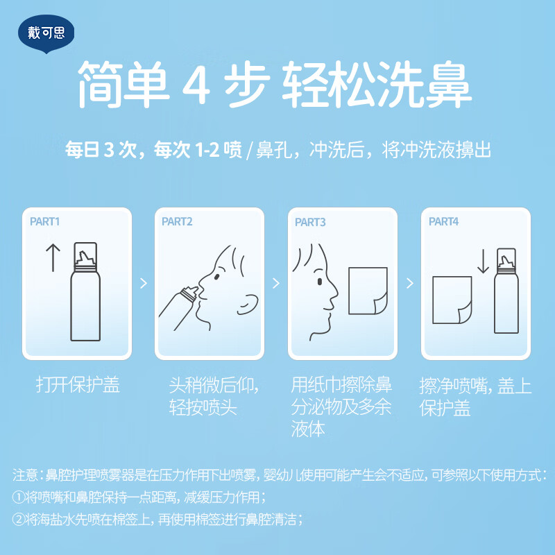 戴·可·思(Dexter)儿童鼻腔护理喷雾 婴儿海盐水洗鼻器 成人通鼻清理生理性海水75ml