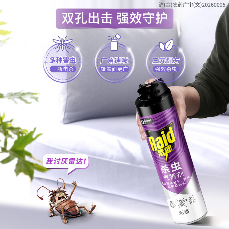 雷达(Raid)基孔肯雅热杀虫剂喷雾灭蚊喷雾600ml(无香型)杀虫剂家用灭蟑螂