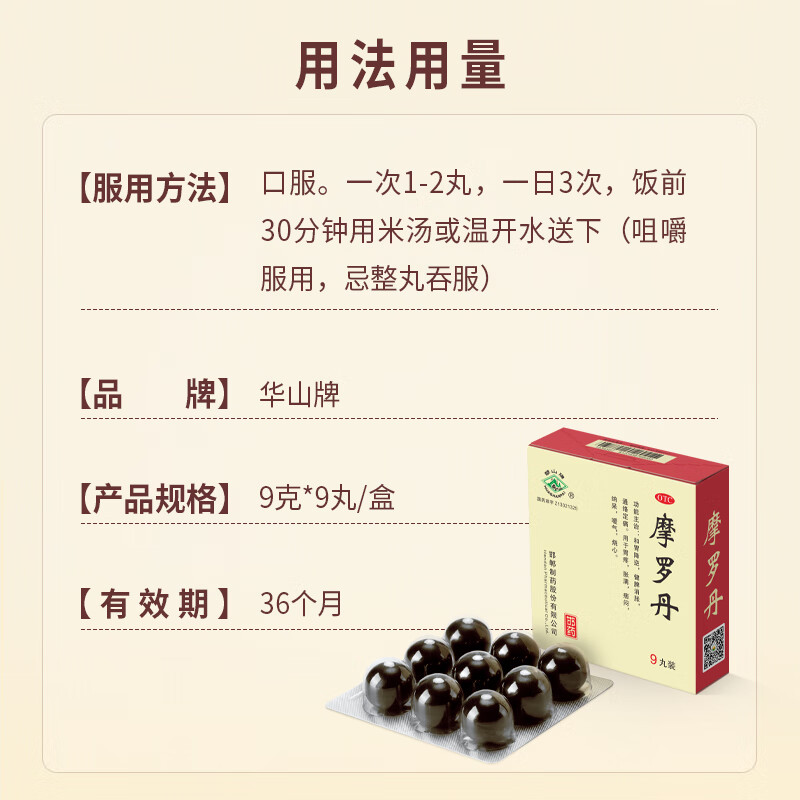 华山牌 摩罗丹大蜜丸9g*9丸5盒装