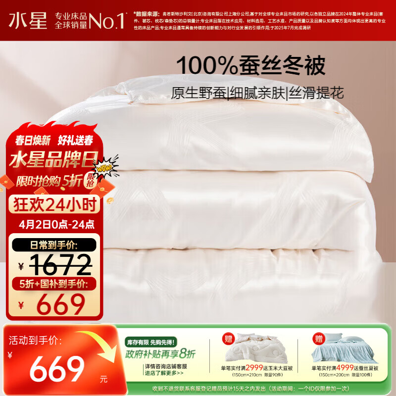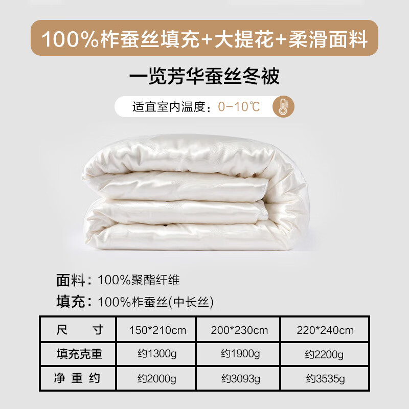 水星家纺蚕丝被100%蚕丝冬被子冬季加厚保暖被芯被褥约6.1斤200×230cm