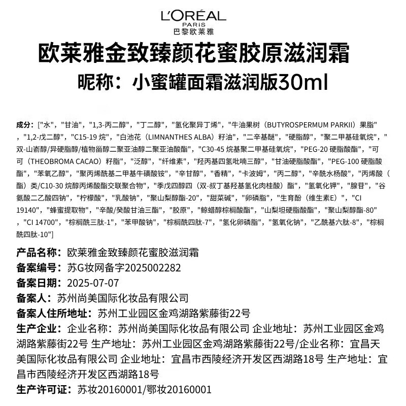 欧莱雅第四代小蜜罐面霜胶原抗皱抗老滋润护肤品30ml【临期清仓】