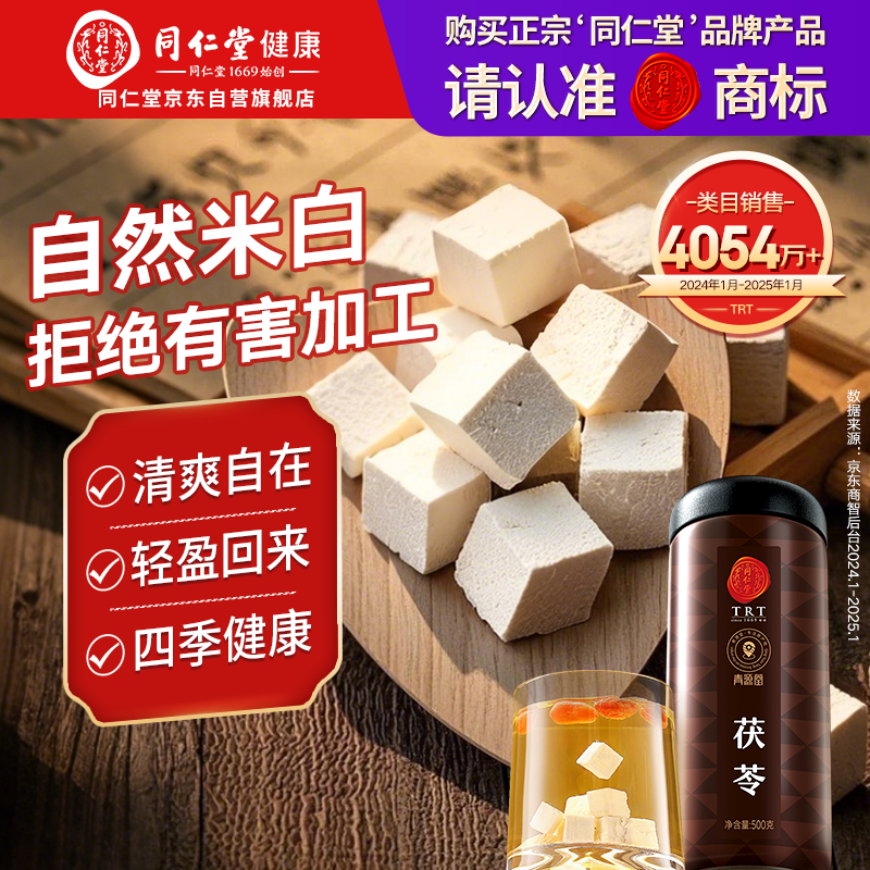 同仁堂品牌北京同仁堂白茯苓块500g伏芩丁伏苓泡茶料煲粥料非中药材