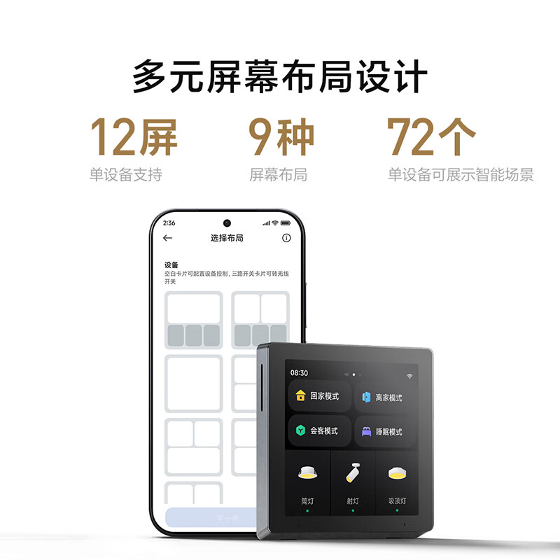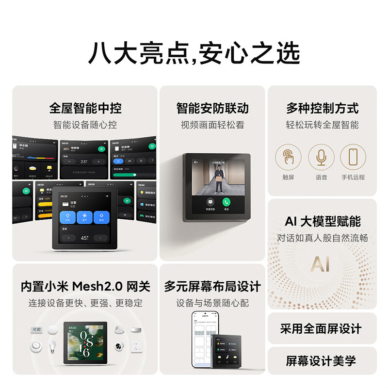 小米(MI)智能中控屏智能家庭面板触控屏小爱同学AI大模型全面屏 深空灰