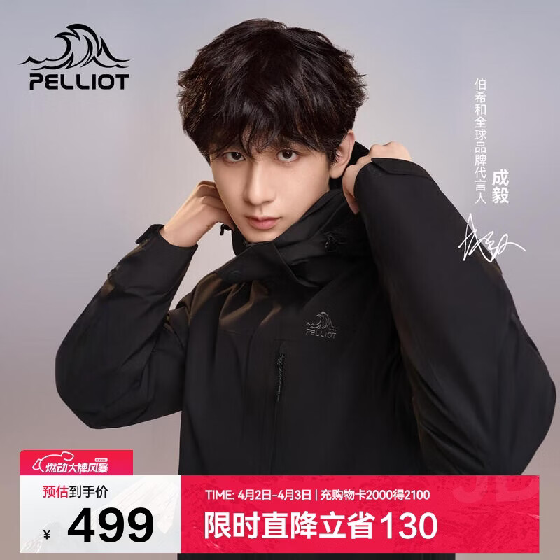 伯希和(Pelliot)【山野经典2.0】冲锋衣三合一春秋男女户外防风外套11340105黑L