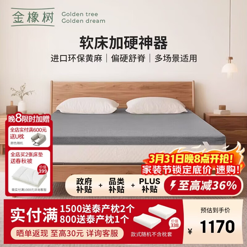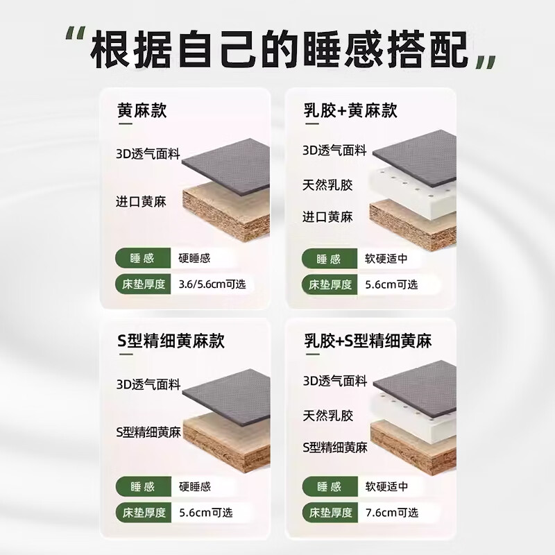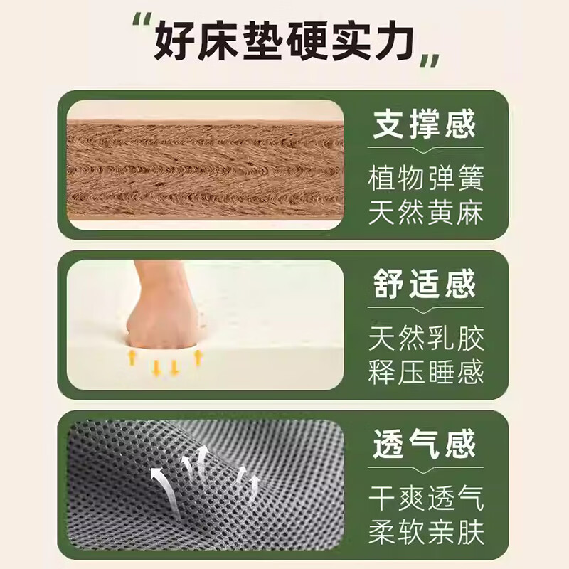 金橡树加硬神器天然乳胶黄麻床垫榻榻米家用1.8米*2米适中偏硬
