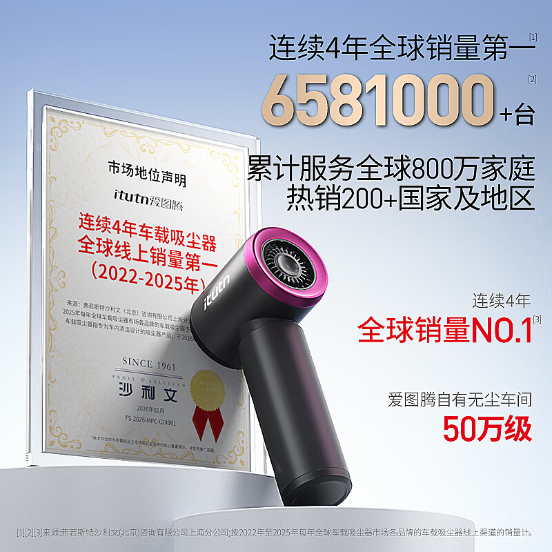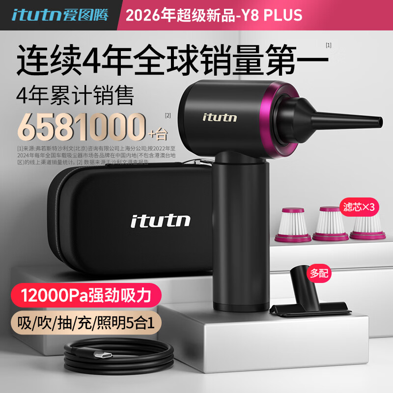 爱图腾itutn车载吸尘器小型手持吸尘器车用无线大吸力吹吸两用一体机汽车内桌面随手吸家用窗户清灰除尘