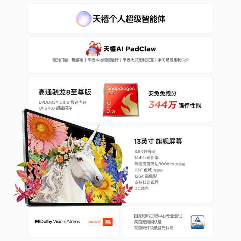联想小新Pro GT 13【国家补贴15%】平板电脑 3.5K超清屏骁龙8至尊版 办公学习影音平板 8+256G 凝雾灰