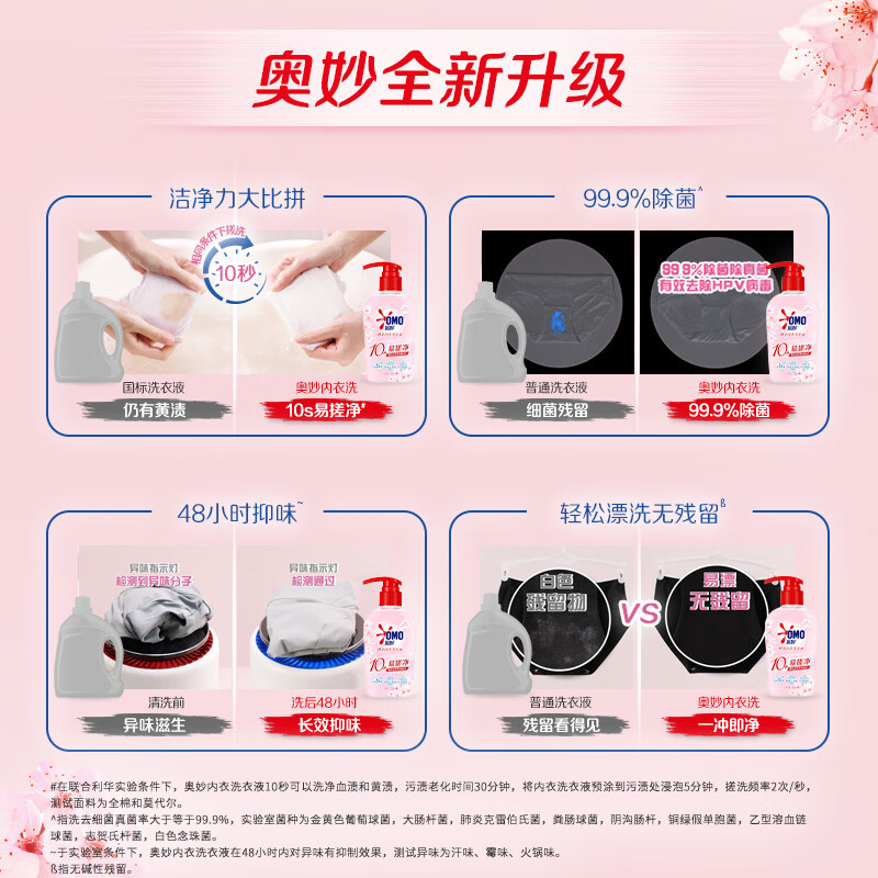 奥妙内衣洗衣液内裤清洗液樱花300g 内衣裤专用有效去除HPV黄渍血渍