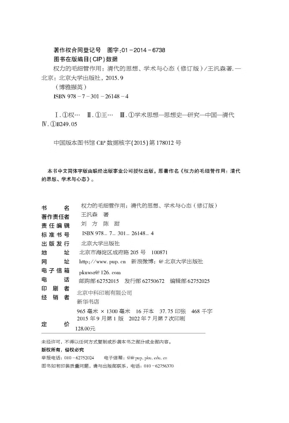 权力的毛细管作用:清代的思想、学术与心态(修订版) 王汎森先生重量级新作 集思想史研究之大成 博