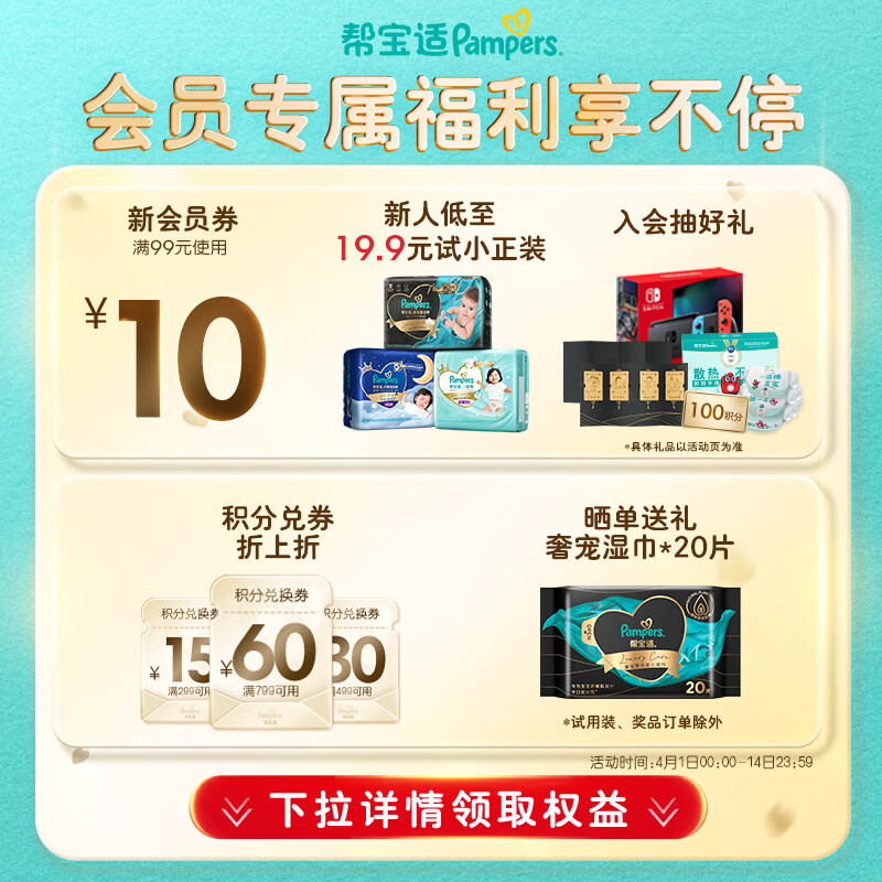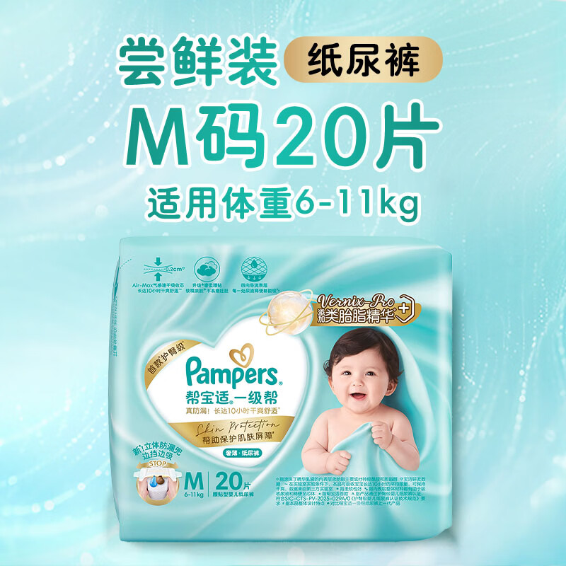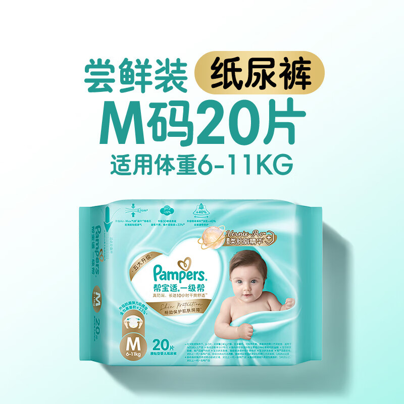 帮宝适类胎脂新一级帮新生儿婴儿防漏超薄纸尿裤mini试用M20尿不湿尿裤
