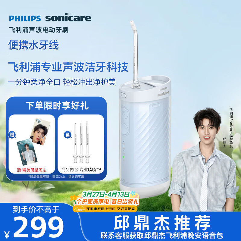 飞利浦(PHILIPS)邱鼎杰推荐款 伸缩便携牙齿冲牙器 正畸洗牙器 生日礼物 送男生女友 3款喷嘴HX3331不困蓝