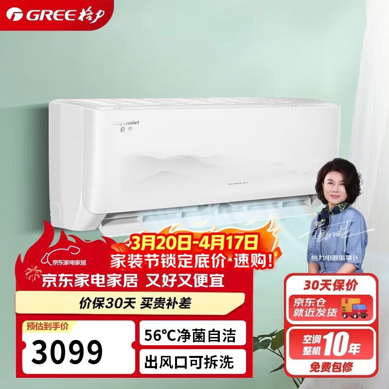 格力(GREE)1.5匹 京爽 新一级能效 变频冷暖 高温自清洁 纯铜管壁挂式空调挂机KFR-35GW/(35587)FNhAd