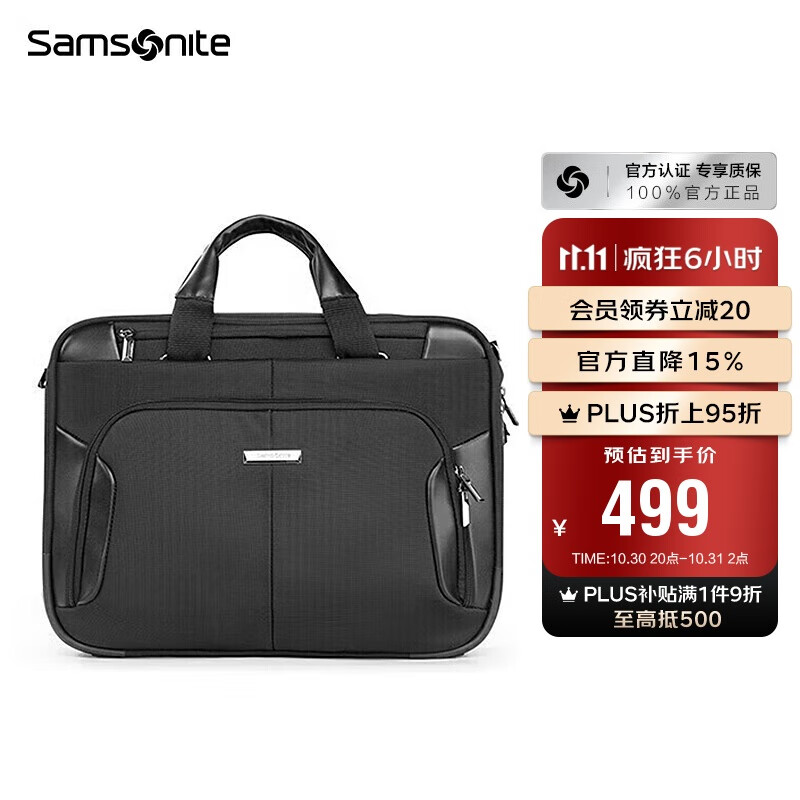 新秀丽(Samsonite)电脑包电脑内胆包商务公文包可挂靠手提包BP0*09009黑色15.6英寸