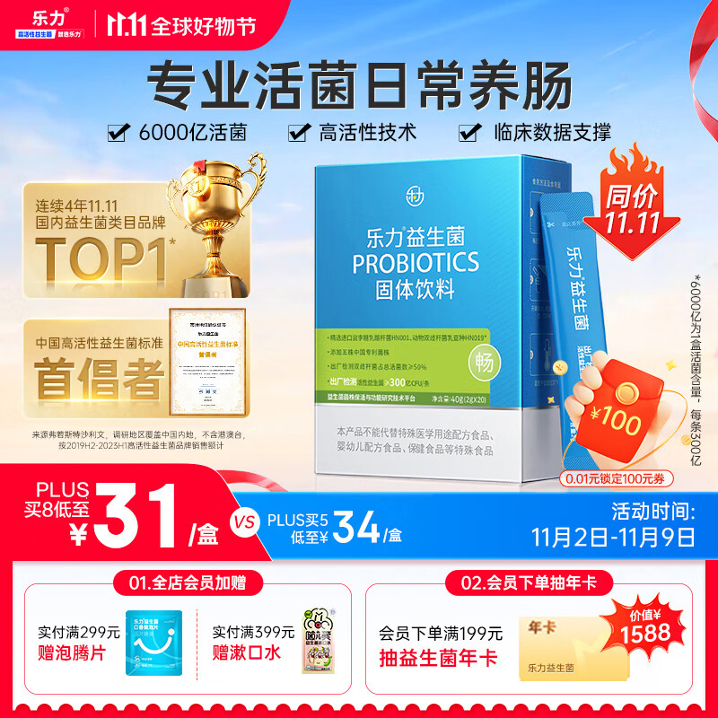 乐力小蓝条益生菌粉6000亿/盒成人儿童中老年孕妇通用调理肠胃道活菌