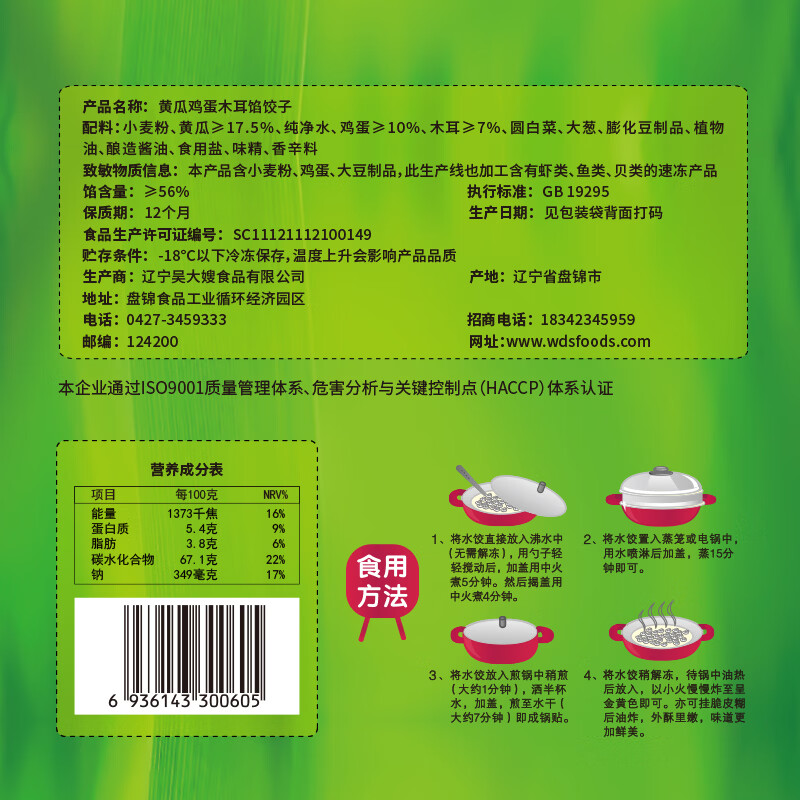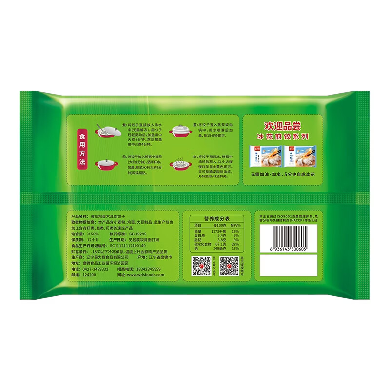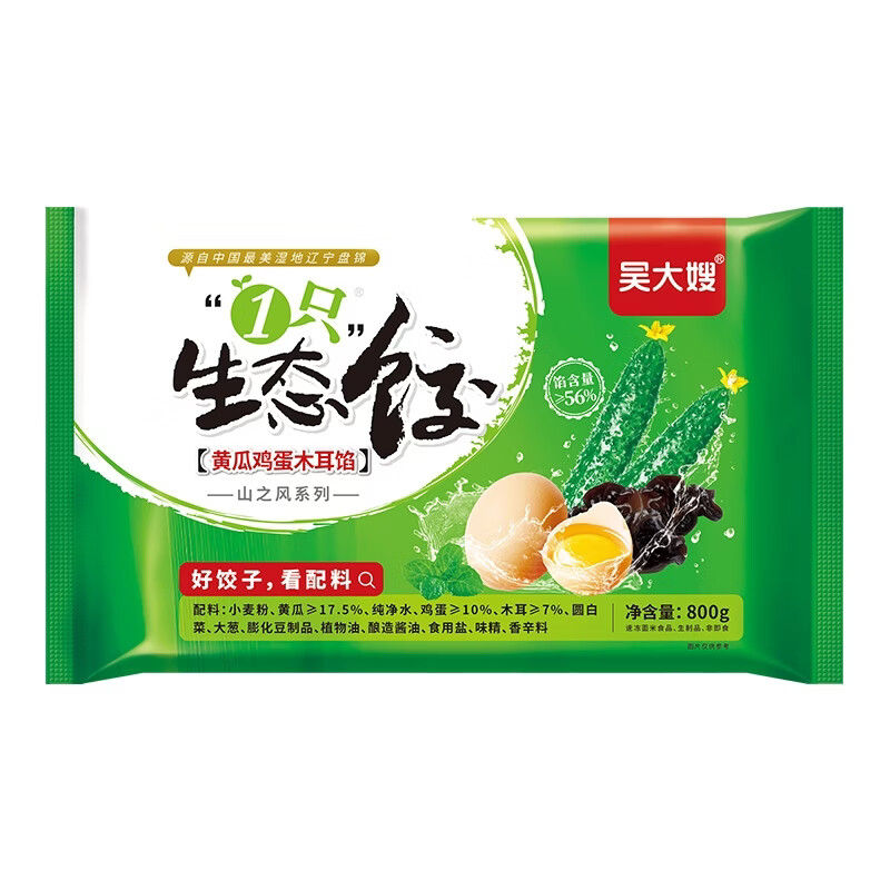 吴大嫂 东北水饺 素三鲜黄瓜鸡蛋木耳水饺 800g 40只 饺子蒸饺煎饺锅贴