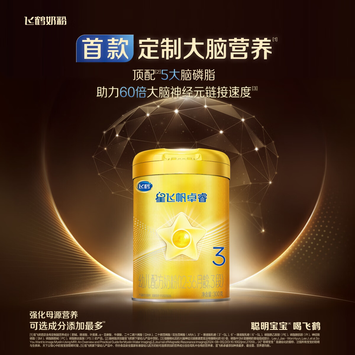 飞鹤星飞帆卓睿 婴幼儿配方奶粉3段(1-3岁)300克 育儿补贴 0元试用