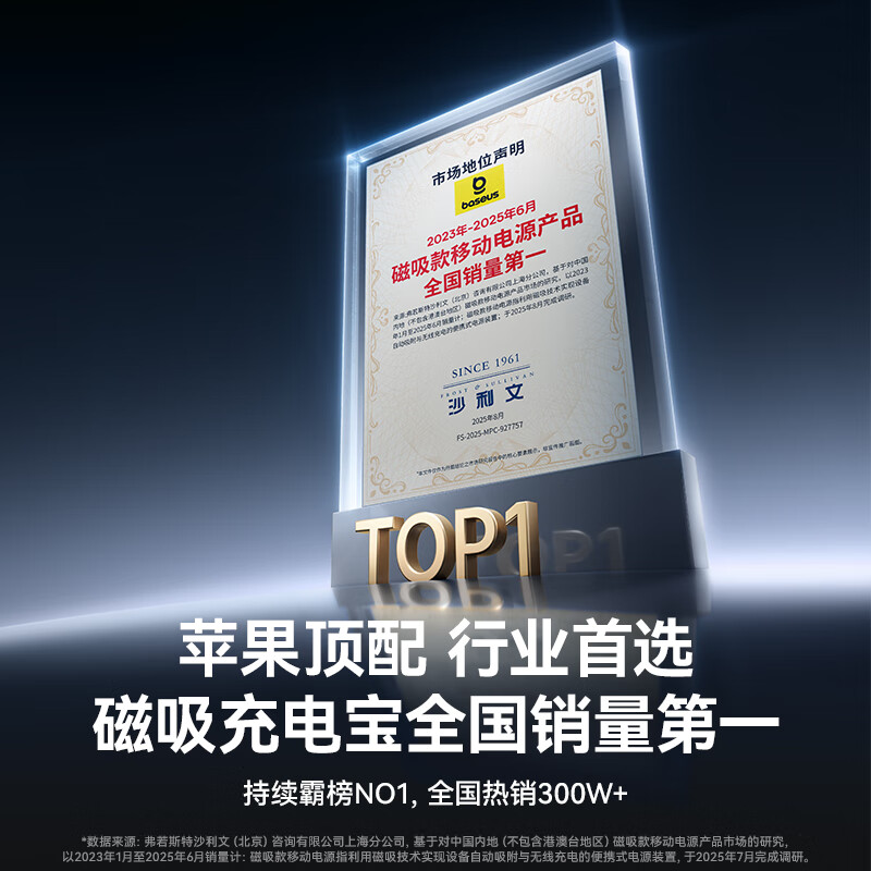倍思【3C认证】磁吸充电宝无线22.5W快充移动电源10000毫安上飞机适用苹果华为小米户外储能电源