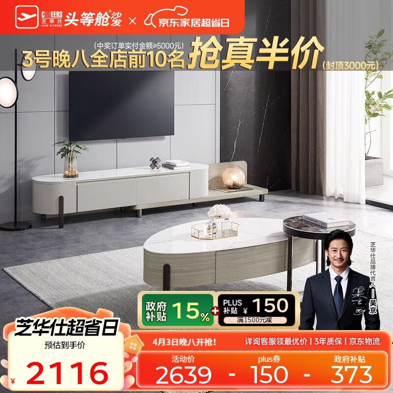 芝华仕[无仓储]茶几现代简约岩板极简芝华士家用小户型pt043茶几