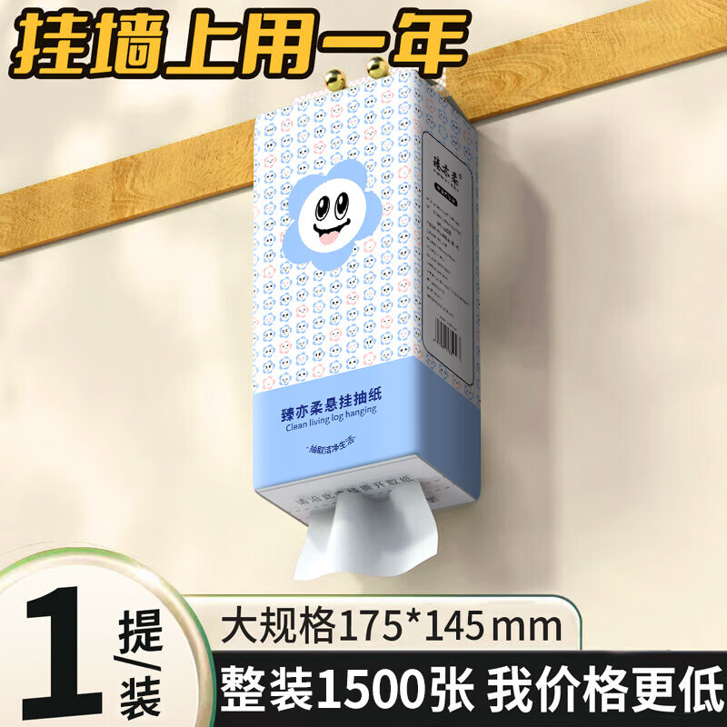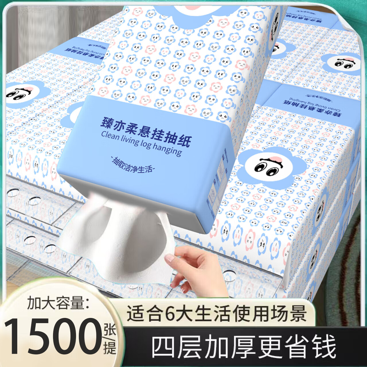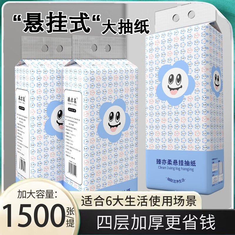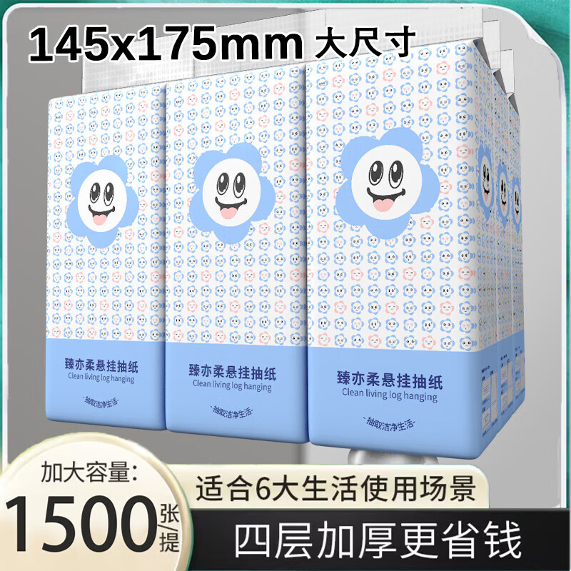 6大提整箱9000张悬挂式抽纸更划算家用卫生纸餐巾纸底部抽纸 4层 1500张*1提