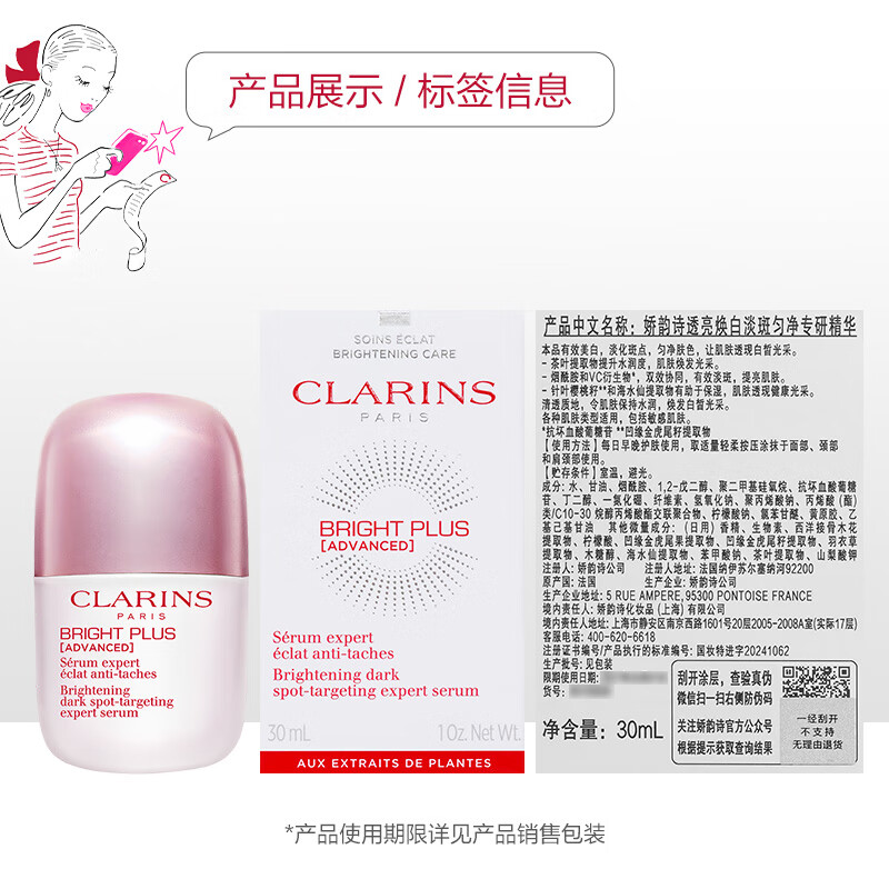 娇韵诗光芒小瓷瓶30ml精华VC美白淡斑补水提亮抗皱护肤品礼物送女友