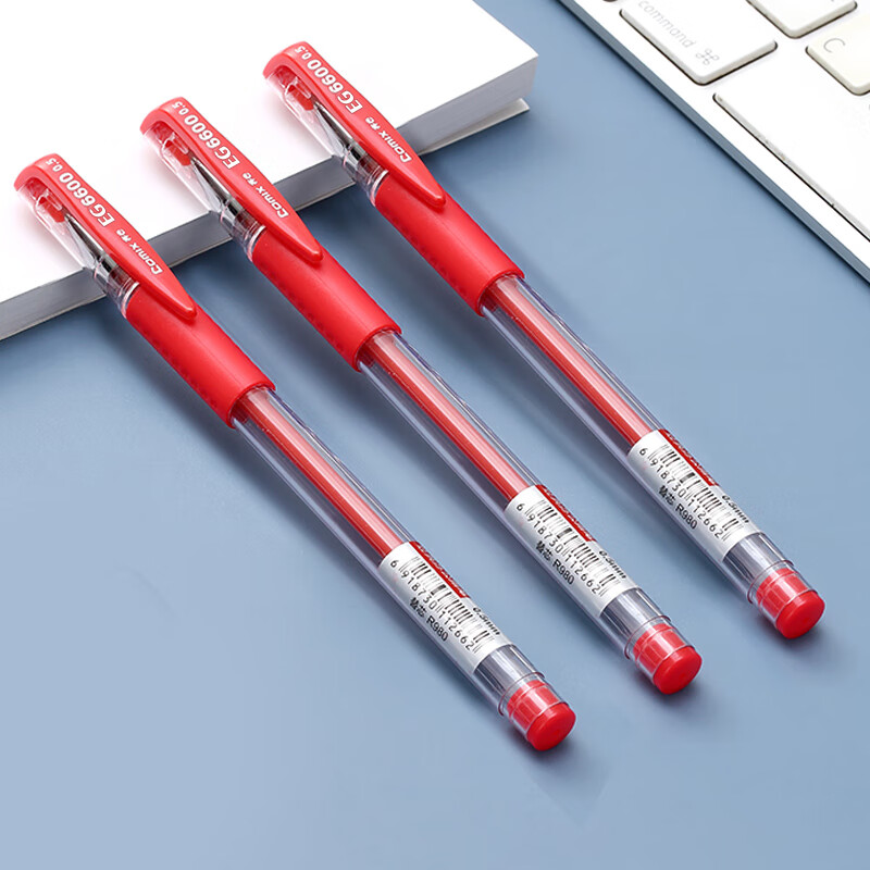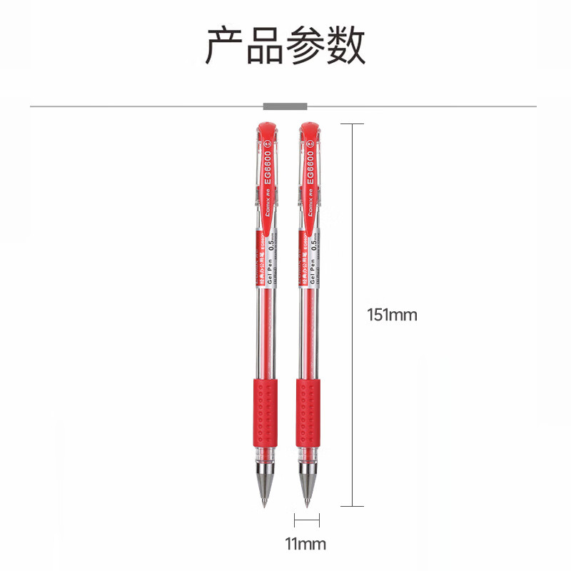齐心(Comix)0.5mm红色经典办公子弹头中性笔 水笔签字笔12支/盒 工具 EG6600