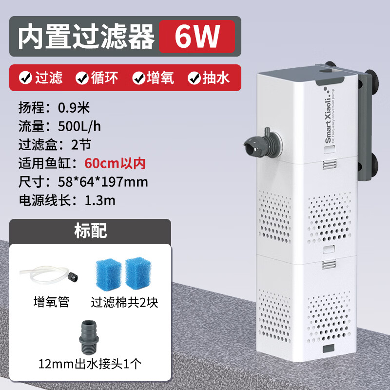 森森 小鲤鱼缸过滤器净水循环三合一内置水族箱过滤系统XQP-500F 6W