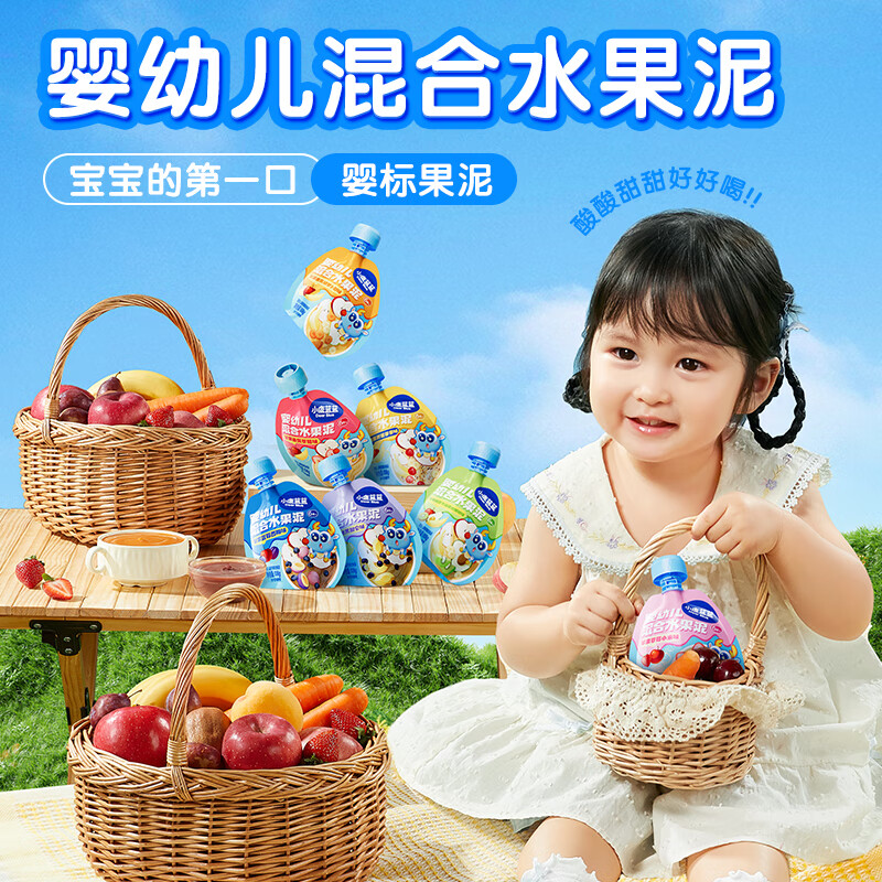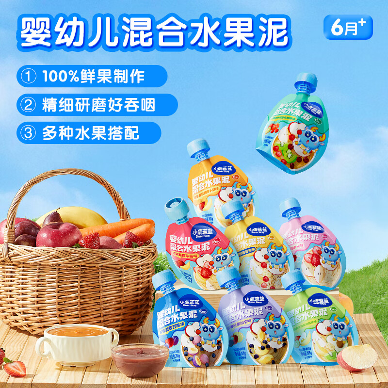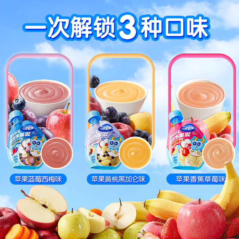 小鹿蓝蓝 婴标果泥婴幼儿果泥6包648g宝宝新鲜水果泥3种口味婴儿辅食